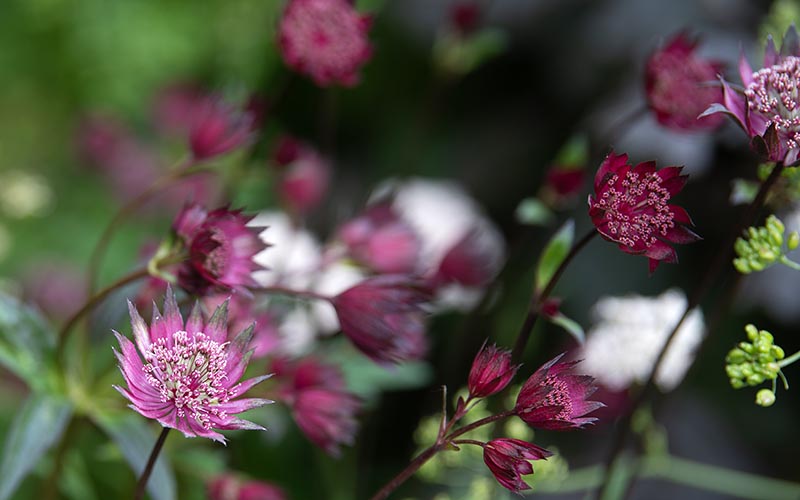 The planting colours are inspired by the notion of ‘strong beauty’ in a palette of deep reds, muted pinks with highlights of other shades and tones to create one of Jo Thompson’s unique colour palettes.