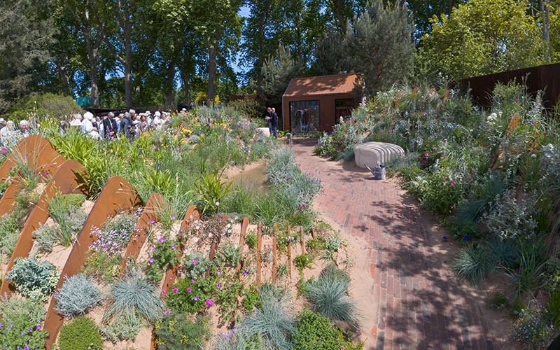 The monument is a permanent fixture at Chelsea. The garden around it was created by Max Parker-Smith and it’s one of the gardens the public can walk in. Planting was supplied by Hortus Loci.
