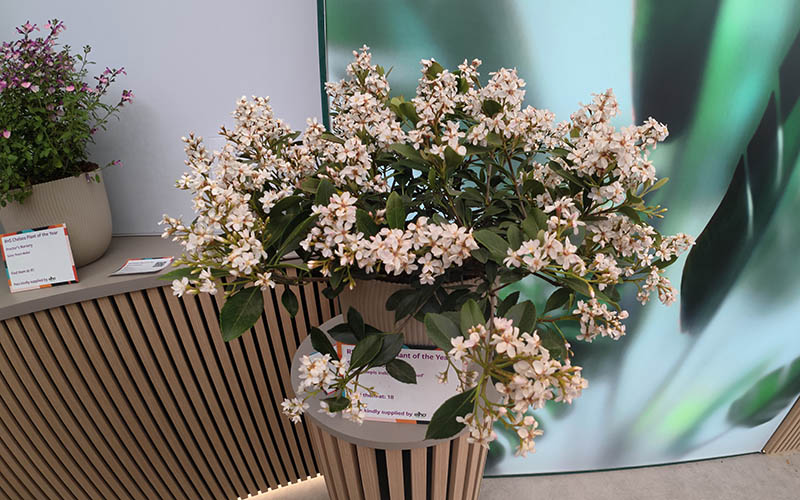The competition was won by their Philadelphus PETITE PERFUME PINK (‘P1’). It’s the first truly pink-flowered Philadelphus. It was bred by Hampshire’s Alan Postill and supplied by Hillier Nurseries Ltd.